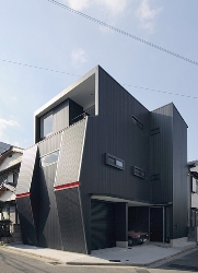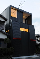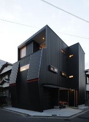 BLACKBASEホワイトベースを黒くしたら?というコンセプトです。クラシックバイクの為のバイクガレージはDIYです。黒いガルバリウム鋼板を使っています。 大阪府吹田市夫婦+子供2人敷地面積 69.97㎡延床面積 122.55㎡木造 3階建DIY バイクガレージ撮影 杉野 圭